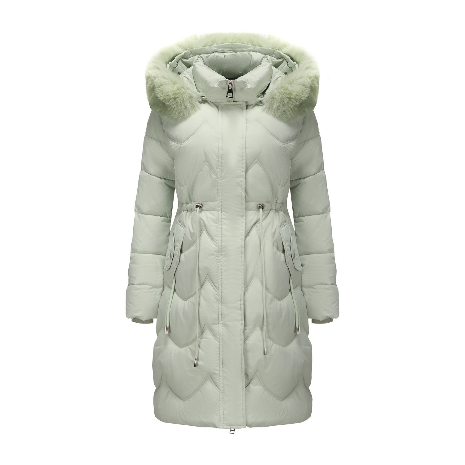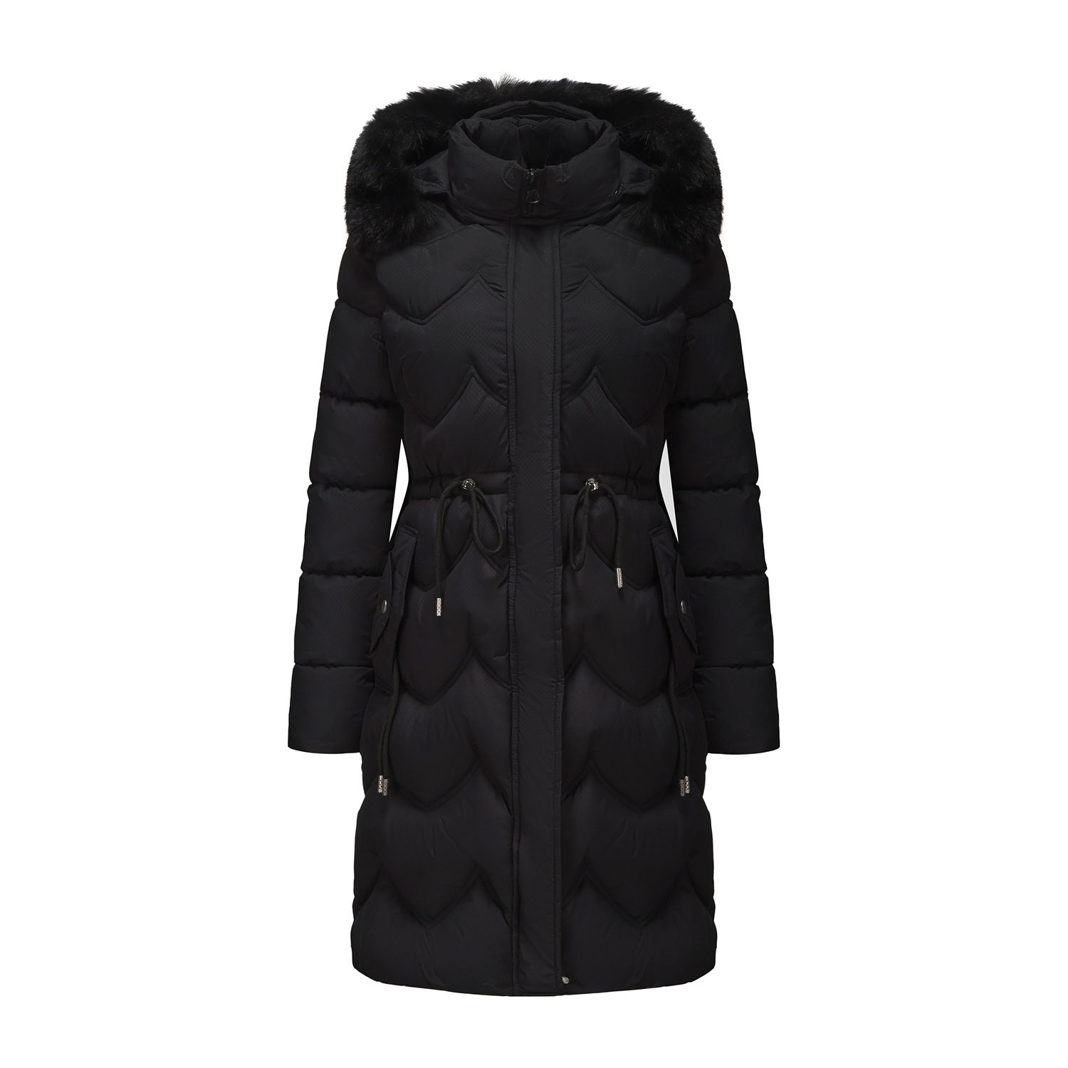 Stay warm and stylish with this mid-length cotton coat, featuring a luxurious fur collar and a waist-cinching design that flatters every figure. Perfect for chilly days without compromising on fashion.