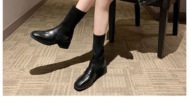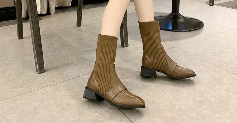 Step out in style with these British-inspired mid-tube Martin boots, featuring a chic square toe and cozy knitted design—perfect for fashion-forward women.
