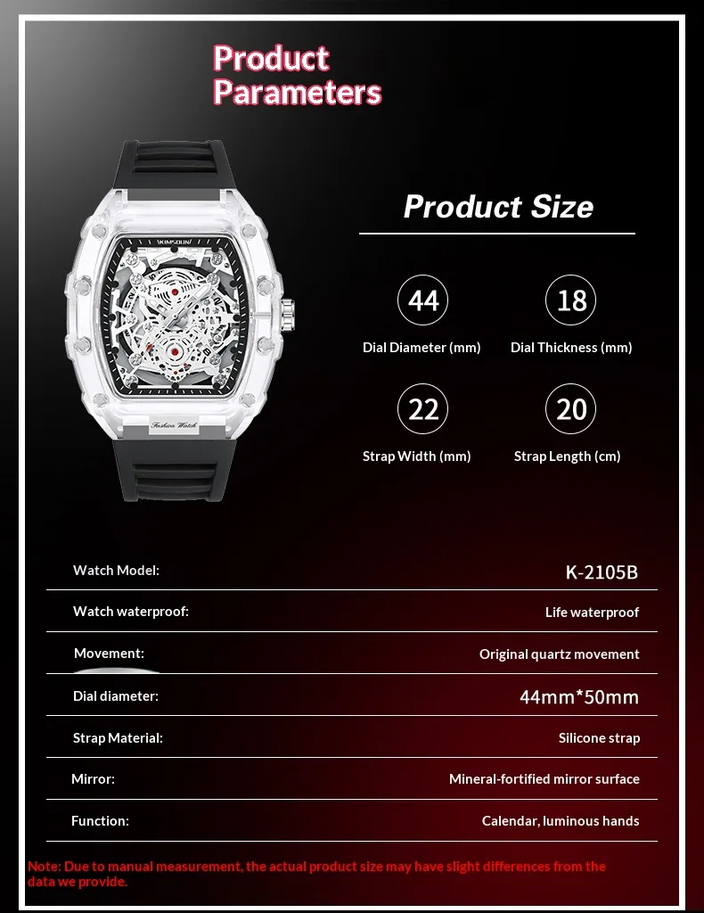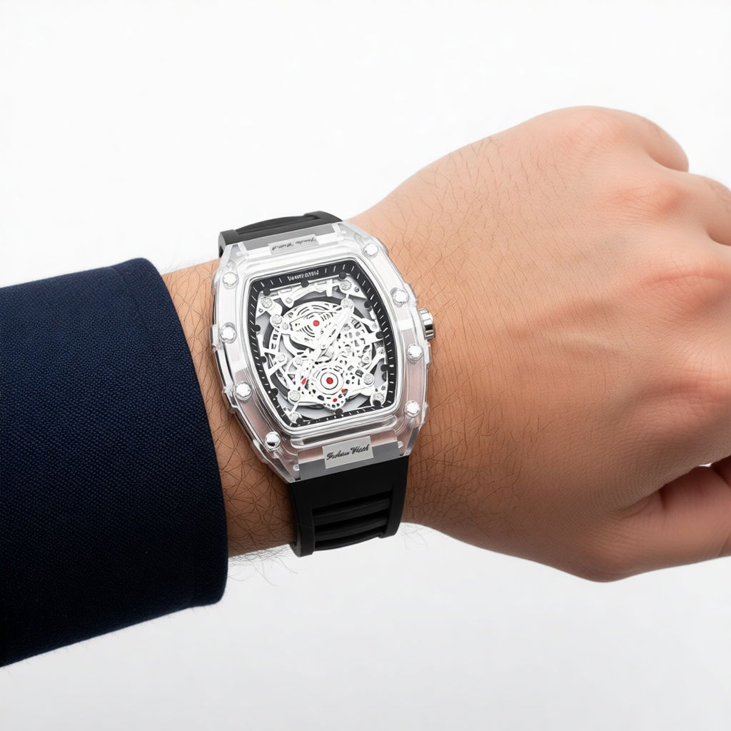 Show off your style with this sleek, transparent men's watch—waterproof, modern, and perfect for any occasion."
