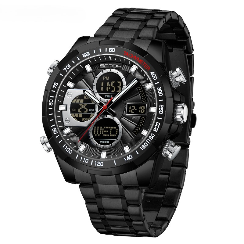 Colors: All-black silicone, black and silver silicone, black and blue silicone, coffee gold silicone, black and gold silicone, black and green silicone, military green silicone, sapphire blue silicone; silver steel band, silver and blue steel band, silver and green steel band, gold steel band, black and gold steel band, black steel band; all-black leather strap, black and silver leather strap, black and blue leather strap, coffee gold leather strap, black and gold leather strap, black and green leather strap, military green leather strap.