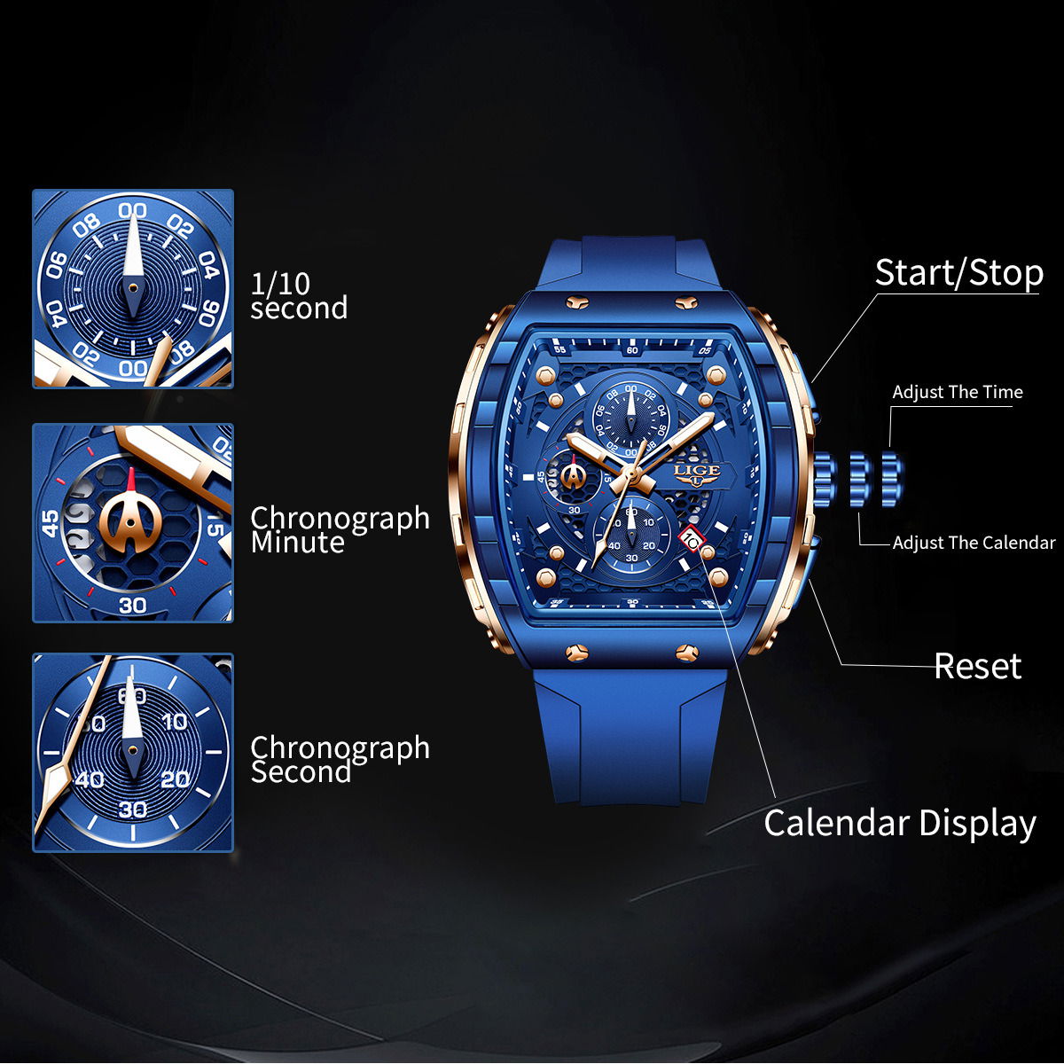 Elevate your game with the LIGE Men’s Sports Quartz Watch — sleek, multi-functional, and built to withstand it all. Featuring luminous hands for night-time visibility, waterproof durability, and precision quartz movement, this watch keeps you on time, on trend, and always in control.
