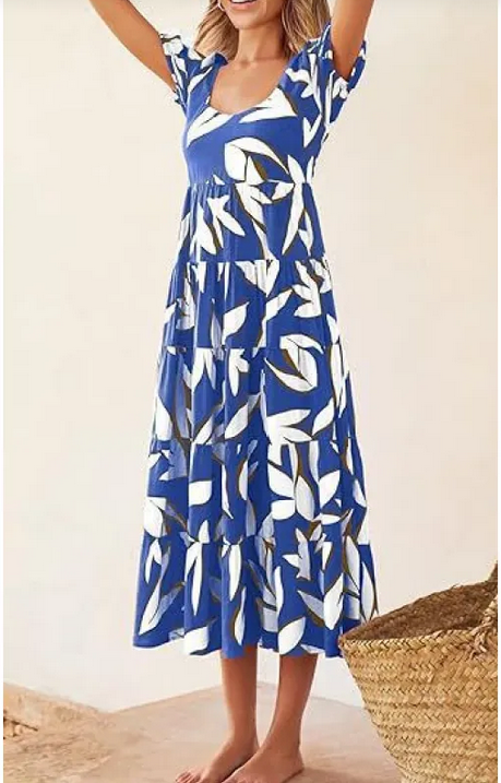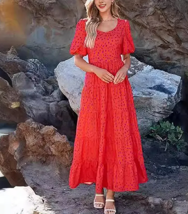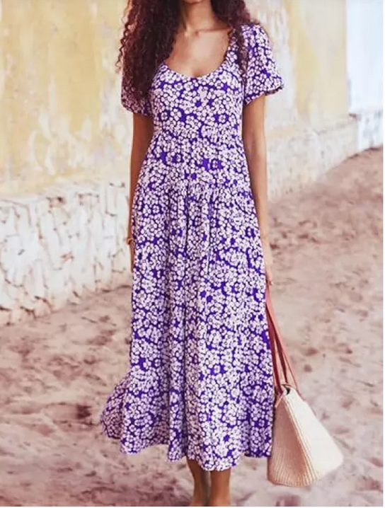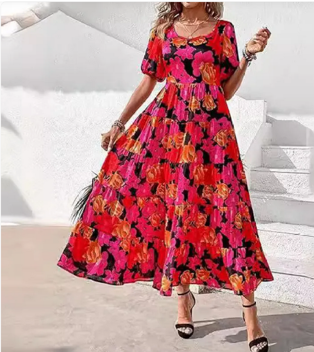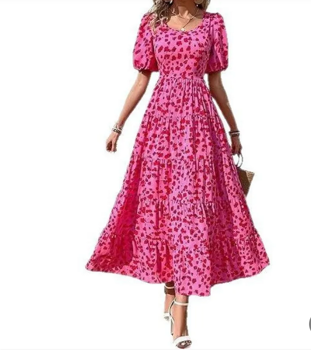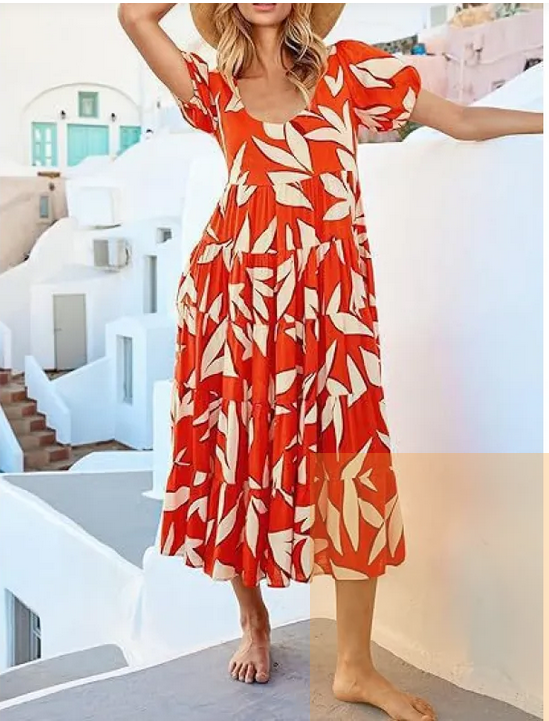 This Puff Sleeve Floral Casual Summer Dress combines style and comfort perfectly, making it ideal for warm-weather outings.