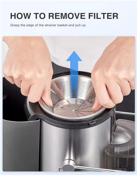 Centrifugal Juicer with Wide Mouth - Centrifugal juicers have a wide mouth to feed your fruits and veggies into, Save your time on chopping and cutting the fruits and vegetables before juicing.