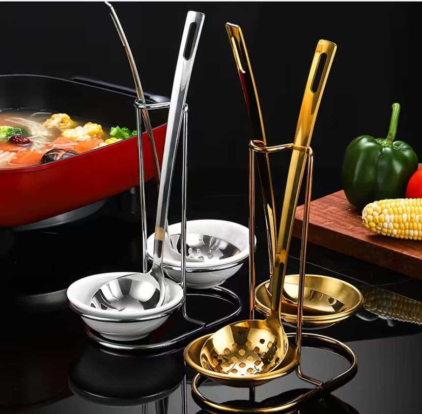 Keep Your Kitchen Clean, Organized & Effortlessly Stylish! Say goodbye to messy countertops and dripping utensils! Our Stainless Steel Kitchen Spoon Rest & Ladle Holder is the sleek, sturdy, and space-saving solution every modern kitchen needs. Designed with a smart stand-up rack, it securely holds your spoons, ladles, spatulas, and even small colanders, keeping them upright, drip-free, and always within reach.